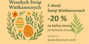 Z okazji Dnia Kobiet – Bylica Roczna -20% tylko w Bioceum… Z okazji 8 marca przygotowaliśmy w Bioceum specjalny rabat — -20% na Bylicę Roczną (Artemisia annua). To roślina, która …
